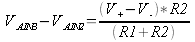 Applying the same formula to V AIN2 and since R1 = R3 and R2 = R4 and simplifying, we obtain the following general equation